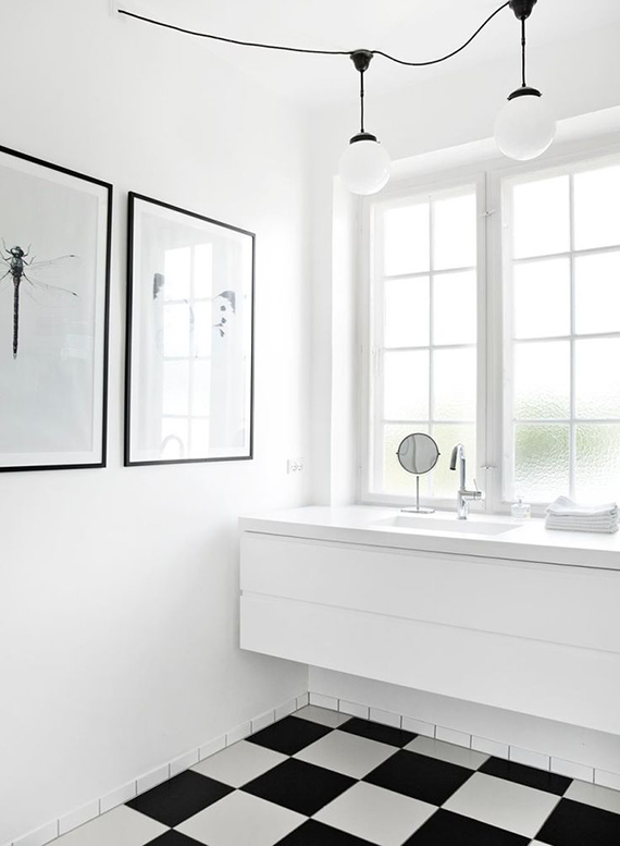 Keeping a room all white gives you lot the liberty to play amongst blueprint on a surface without suffocating the space. The contrasting geometric patterns on the floors of these bathrooms are an first-class example. If you lot are interested to read to a greater extent than on this subject, I convey written an article on eclectic bathrooms amongst patterned tile floors on The Interior Collective blog. Check it out here and function out your thoughts!